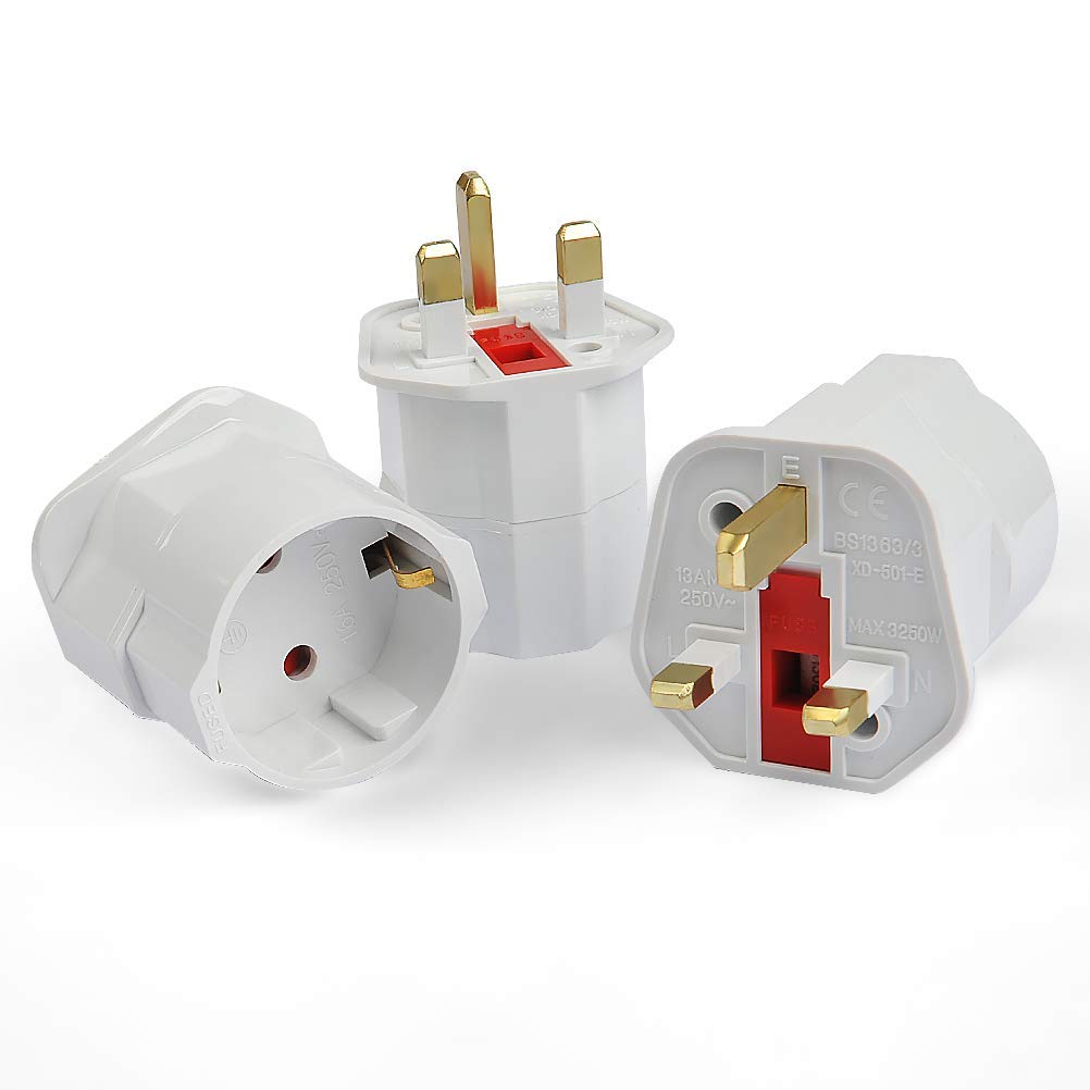 Lot de 3 adaptateurs de Voyage pour visiteurs Britanniques, 2 Broches Europe vers 3 Broches UK-Blanc