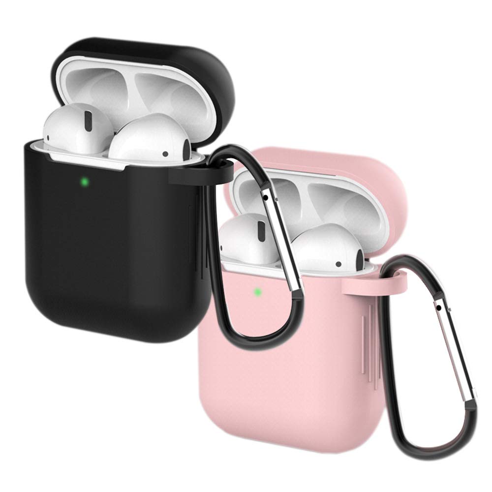 2X coque en silicone pour Apple AirPods 2 & 1, Molylove Case pour Airpods Coque en Silicone Coque Protection Antichoc [Face avant visible] (AirPods 2, Rose + Noir)